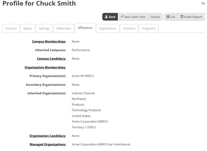 - Campus Memberships – What campus the user is directly mapped to. This will likely be None, as most mappings are handled through organizations